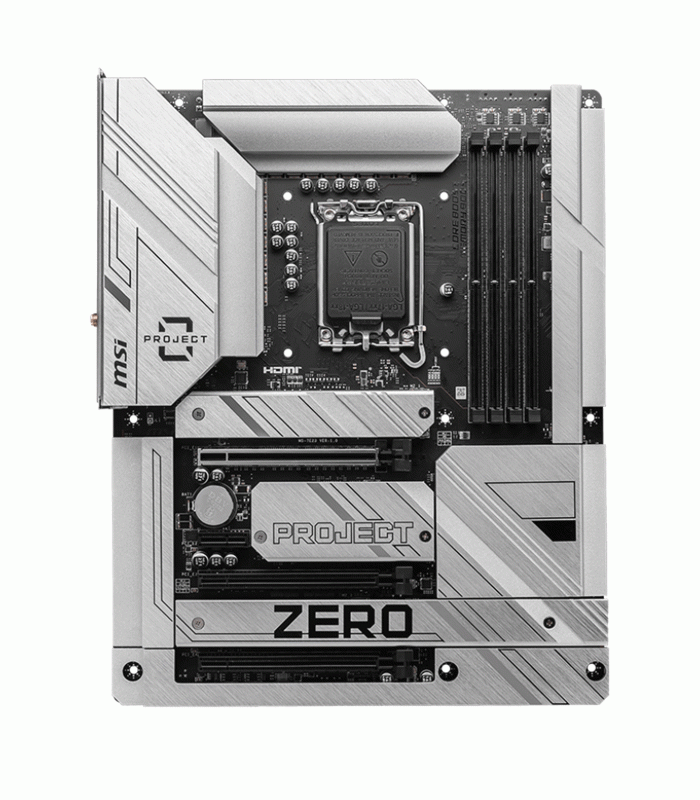 MSI’s attention to detail extends to every element of the board, from its elegant geometric lines to its subtle branding. The absence of RGB lighting aligns with its minimalist design philosophy—favoring sophistication and functionality over flashy illumination. This refined aesthetic ensures that the Z790 Project Zero fits perfectly into both professional workstations and enthusiast gaming builds where performance and precision matter most.